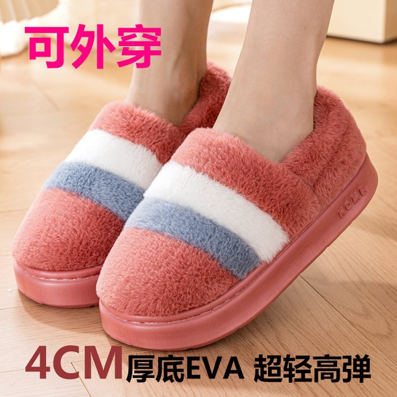 【高货4.0】棉拖鞋女冬季毛毛拖鞋外穿天时尚百搭厚底一字拖潮鞋
