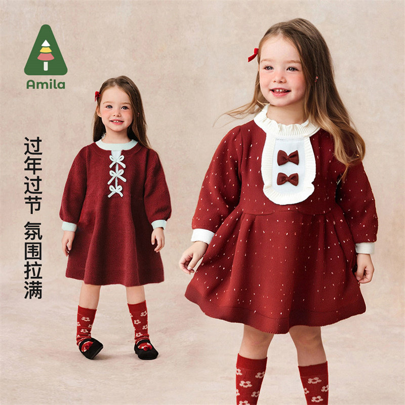 - 长袖针织两件套连衣裙