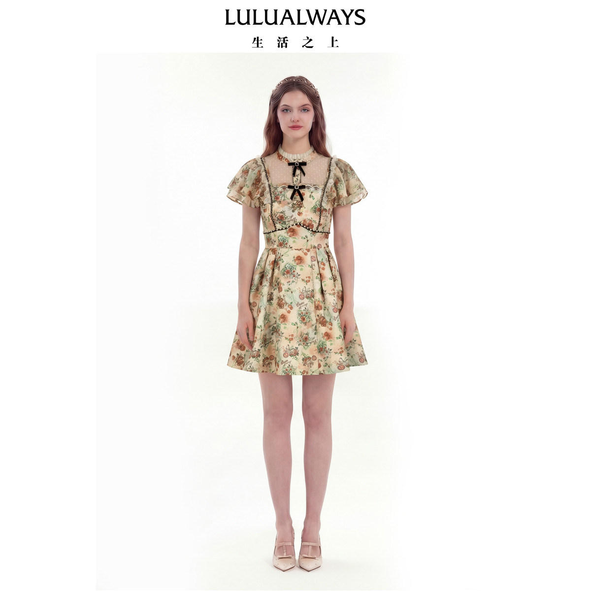 lulualways【商场同款】秋季新款复古公主风高腰显瘦印花连衣裙