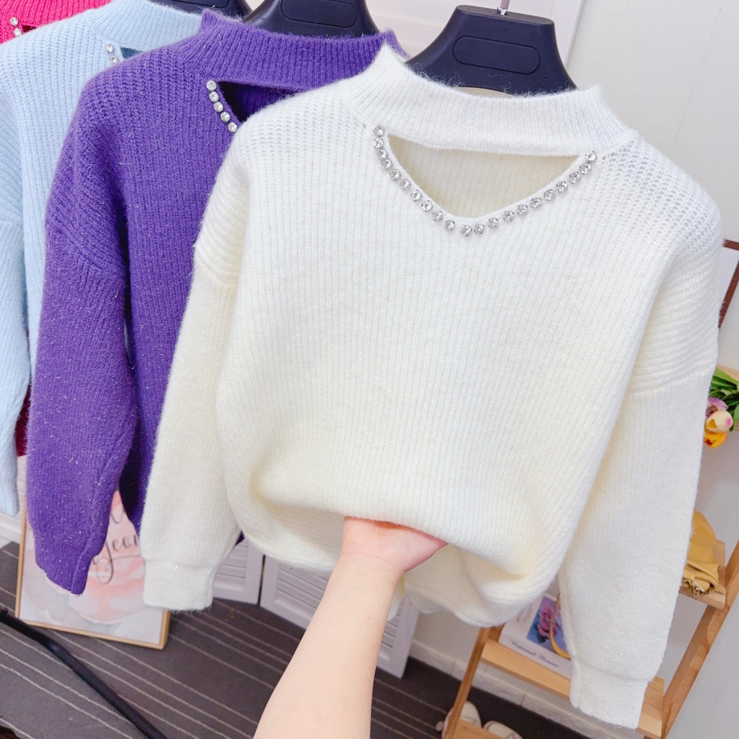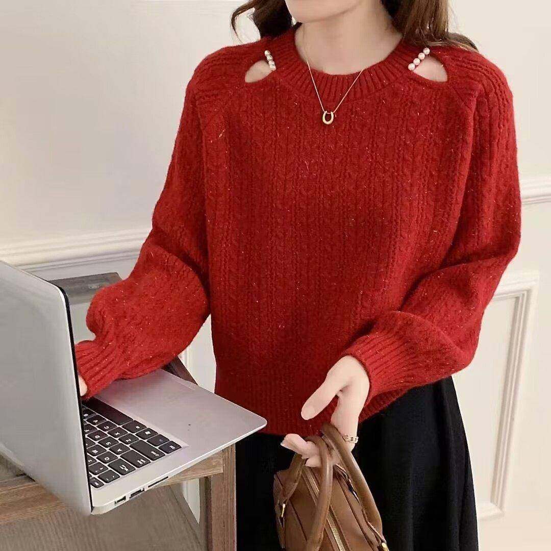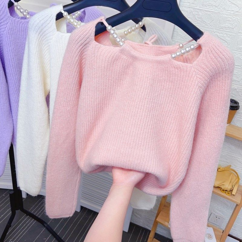 - 针织衫 露锁骨