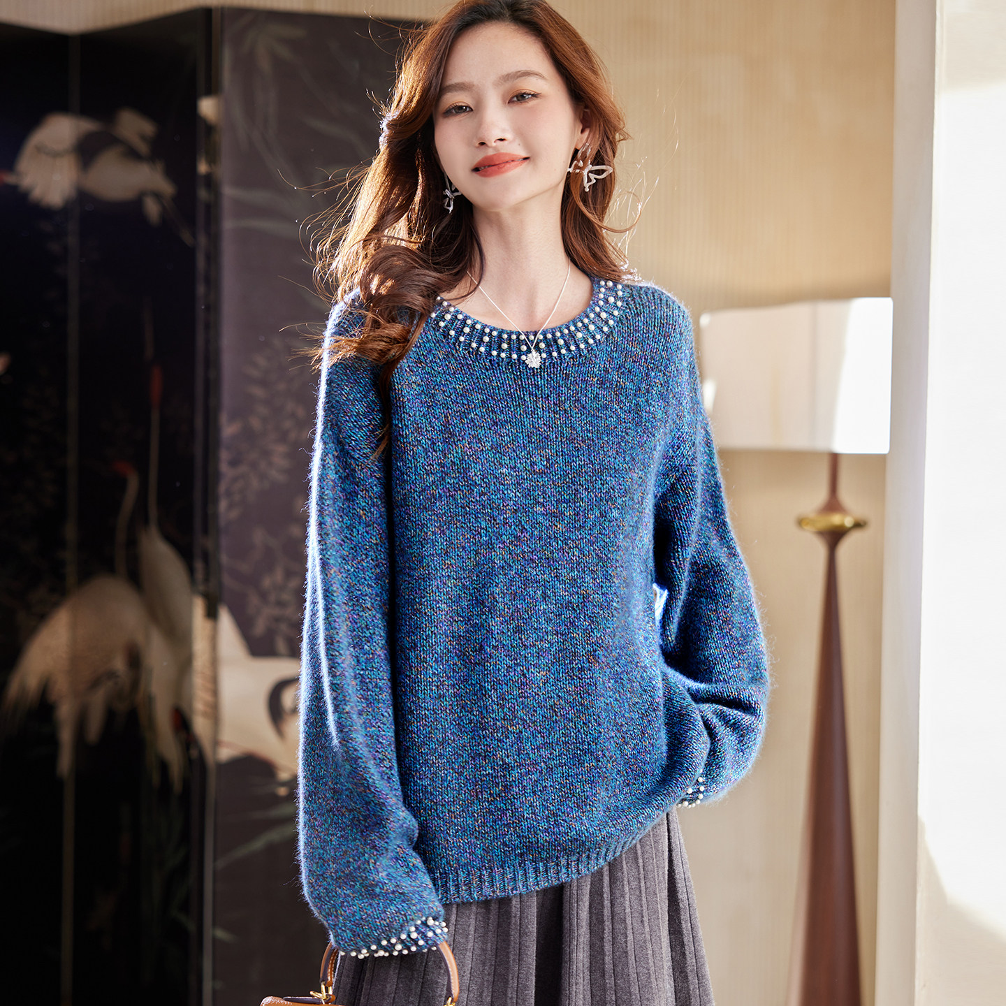 - 宽松套头女针织衫