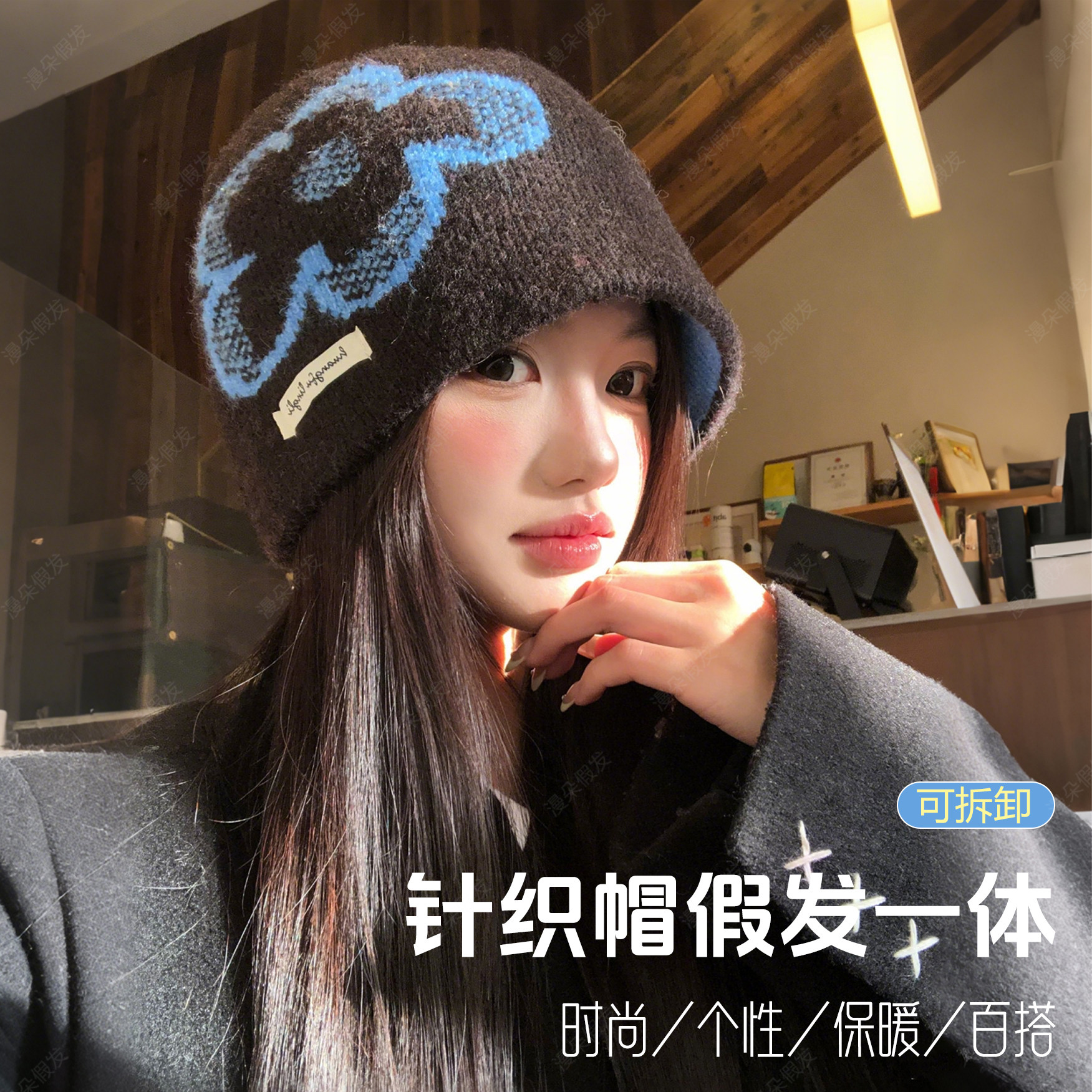 韩国ins复古提花针织帽子假发可拆女秋冬季25新款保暖冷帽包头帽