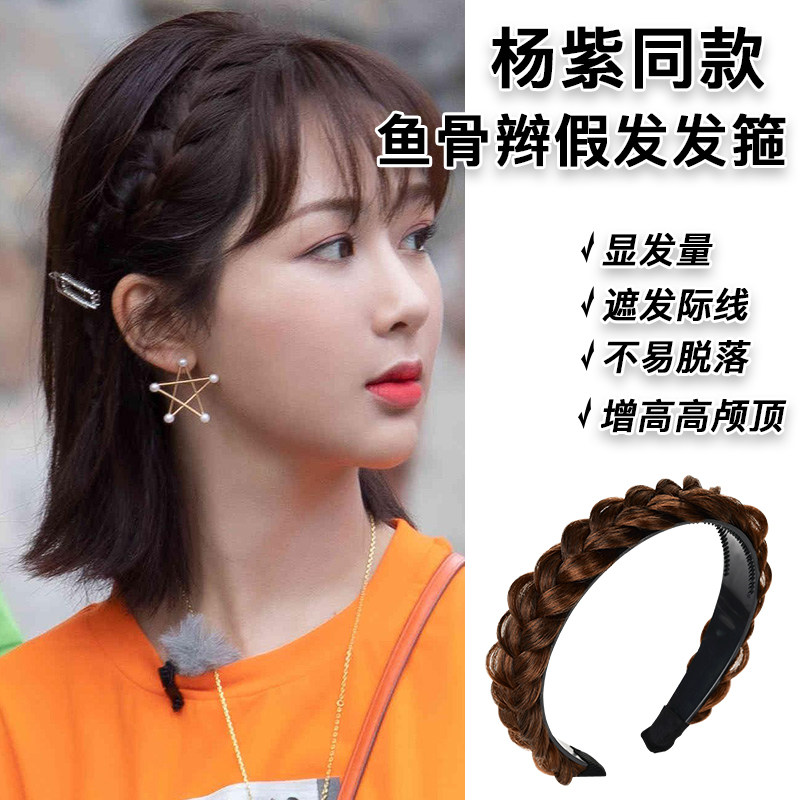 白鹿同款鱼骨辫假发箍女2025新款夏天韩国高颅顶气质百搭压发外出