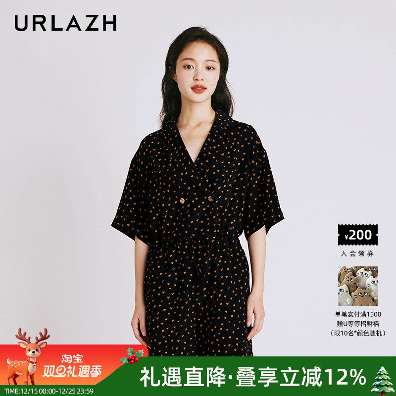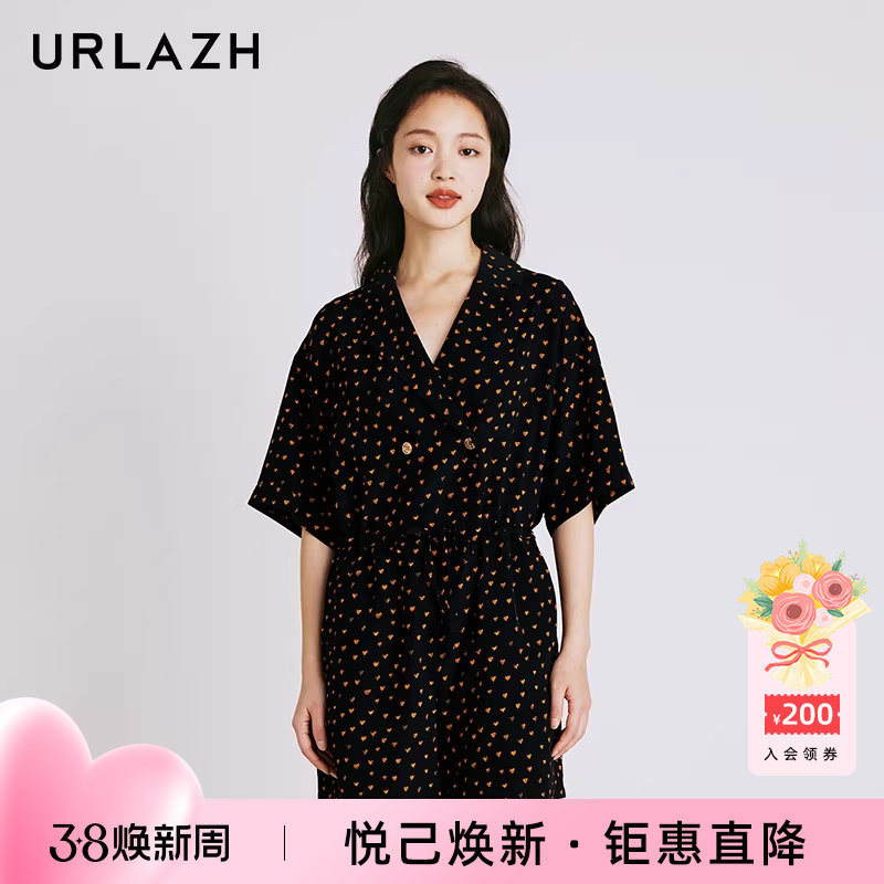 URLAZH有兰新款黑色爱心波点法式复古气质轻薄V领高腰连体衣裤女