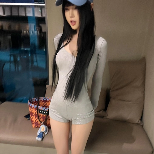 黑色美式长袖连体衣裤女秋冬2025新款纯欲风紧身收腰辣妹打底短裤