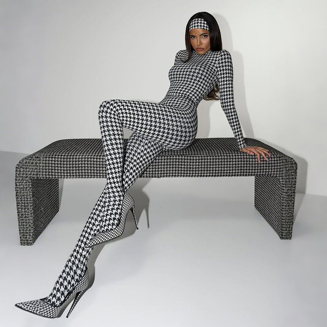小众辣妹黑色长袖连体衣裤女秋冬2025新款纯欲紧身法式显瘦打底裤