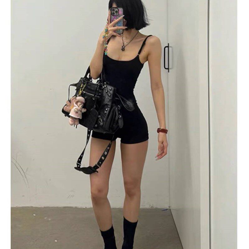 夏季黑色百搭连体衣裤女2024新款美式辣妹设计感别致包臀打底裙裤