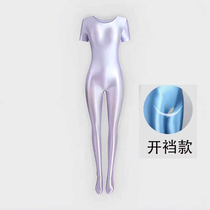 弹力光泽紧身衣塑身健美运动全包连体衣裤女短袖连脚芭蕾练功服装