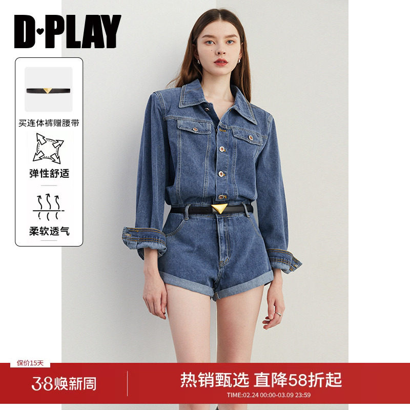 DPLAY长袖牛仔连体短裤女2026年春季新款时尚小个子牛仔连体衣女