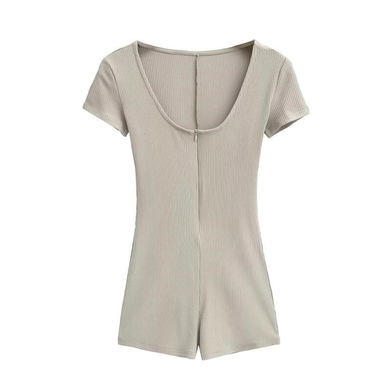 半拉链U领设计瑜伽健身连体衣裤女短袖打底性感显瘦平角连体短裤