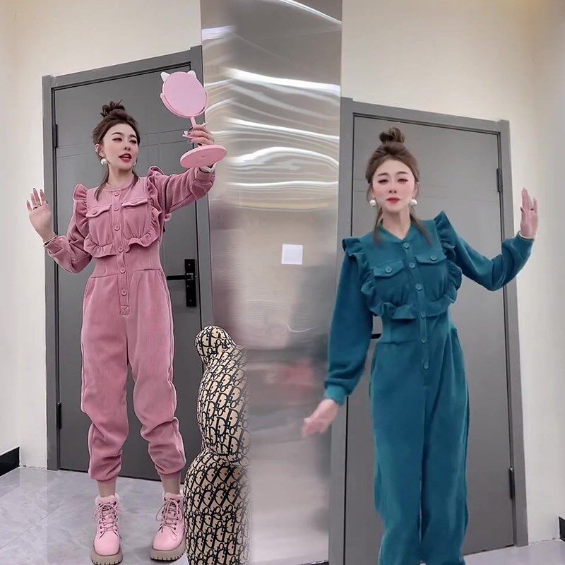 网红爆款时尚连体衣裤女2022年冬季新款韩版显瘦拼接休闲工装裤潮