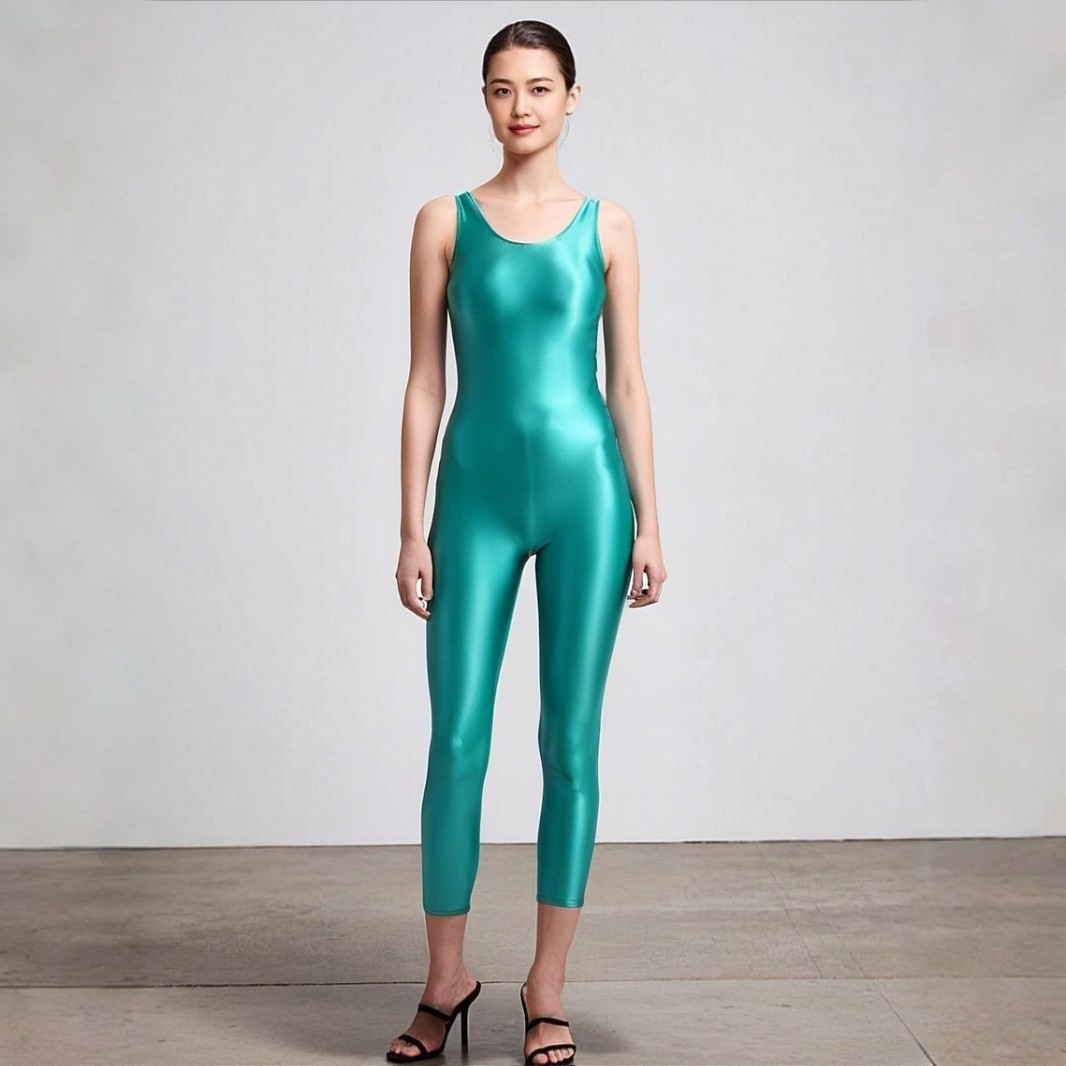 瑜伽健美弹力光泽连体紧身衣塑身健美运动连体衣裤女背心连七分裤