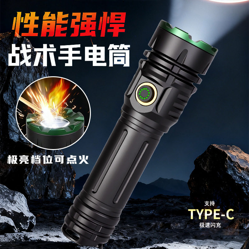 超亮大功率激光点火手电筒强光充电户外远射多功能超长续航大容量