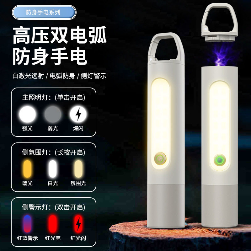 白激光手电筒尾巴高压双警示灯柔光侧点火器电弧安全灯罩照明电筒