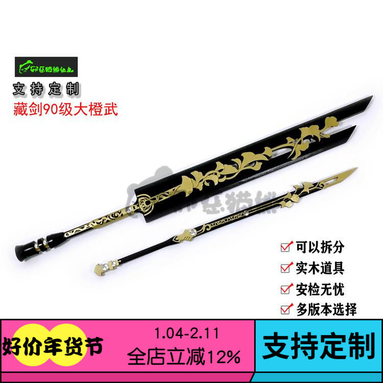 邪恶猫熊~藏剑90大橙武问水千叶长生山居泰阿cosplay武器实木道具