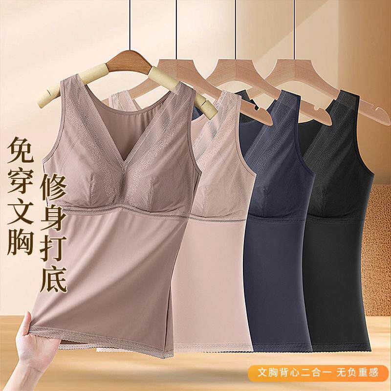 大码保暖加绒塑身衣带胸罩一体式紧身美体束身内衣束腰收腹背心女