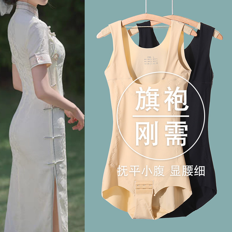 旗袍专用塑身衣夏季薄款收腹束腰提臀收小肚子带胸垫连体束身内衣