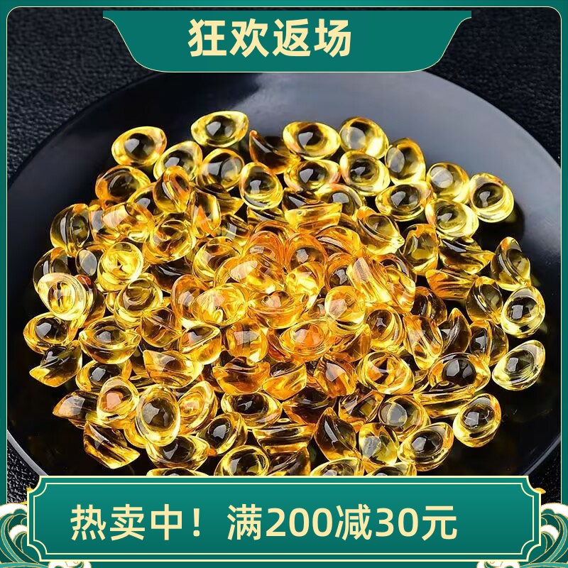 七彩琉璃黄水晶小元宝摆件冰箱百福黄铜米缸聚宝盆填充物家居装饰