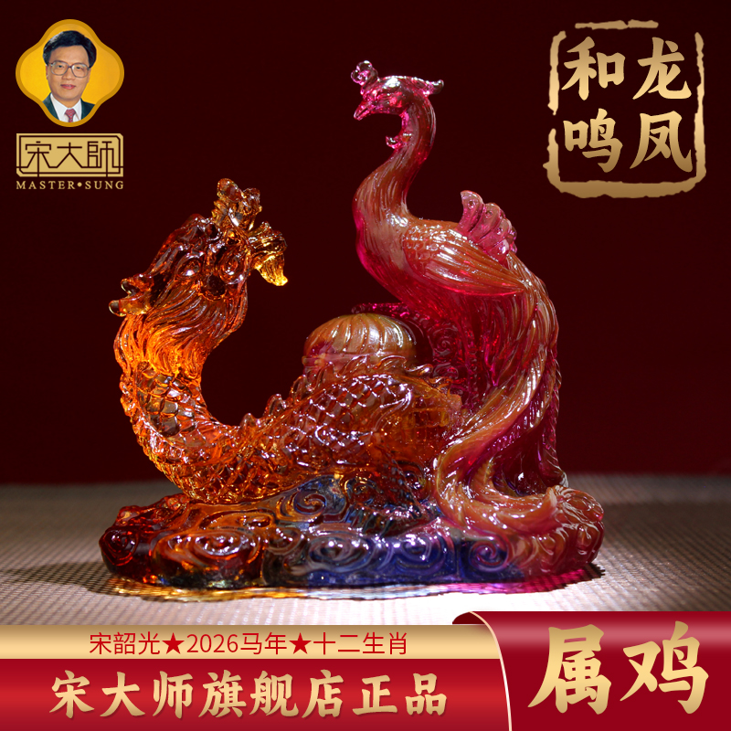 集雅轩宋韶光大师2026马年吉祥物生肖属鸡 龙凤和鸣 琉璃摆件礼品