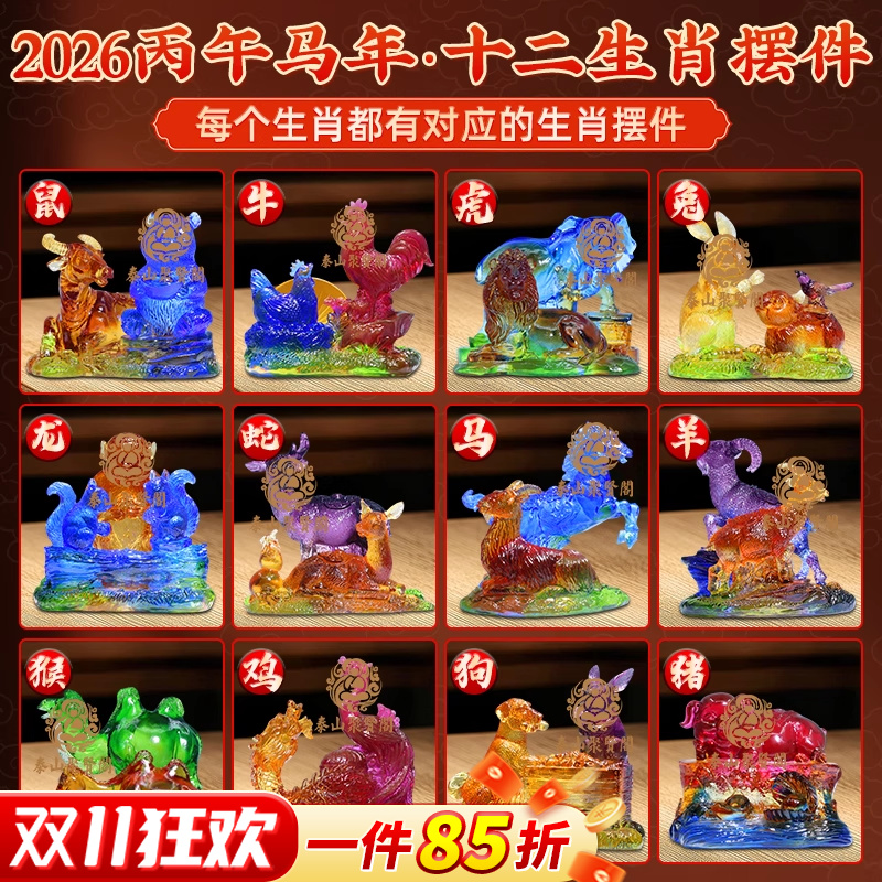 宋韶光2026马年吉祥物生肖鼠牛虎兔龙蛇马羊猴鸡狗猪琉璃摆件吊坠