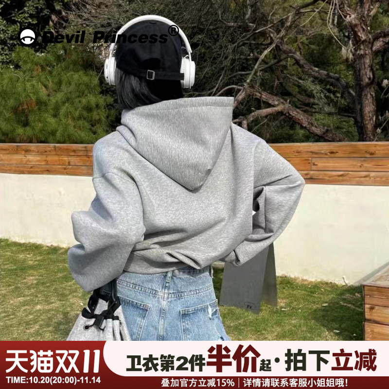 高级感灰色帽衫卫衣女宽松韩版百搭超火小个子韩风通勤外套ins潮