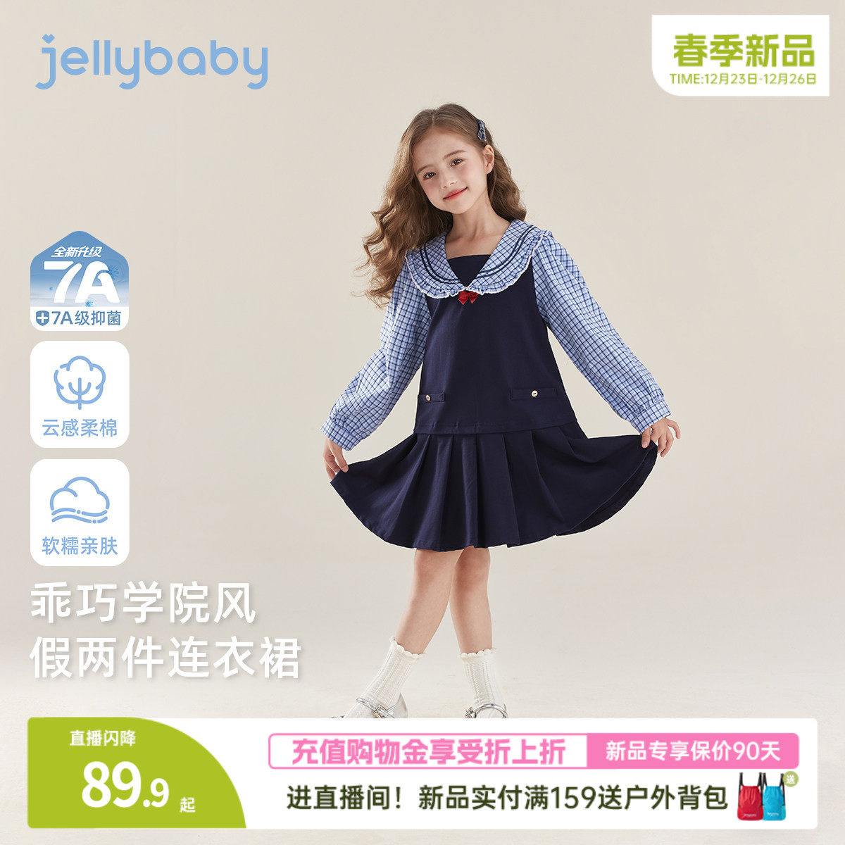 [2026春季新品]女童裙子儿童学院风格纹海军领假两件连衣裙春装女