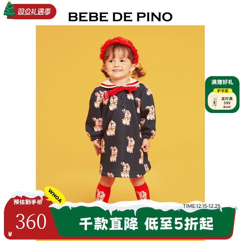 BEBEDEPINO贝贝品诺童装年冬季女童连衣裙女宝宝海军风裙子