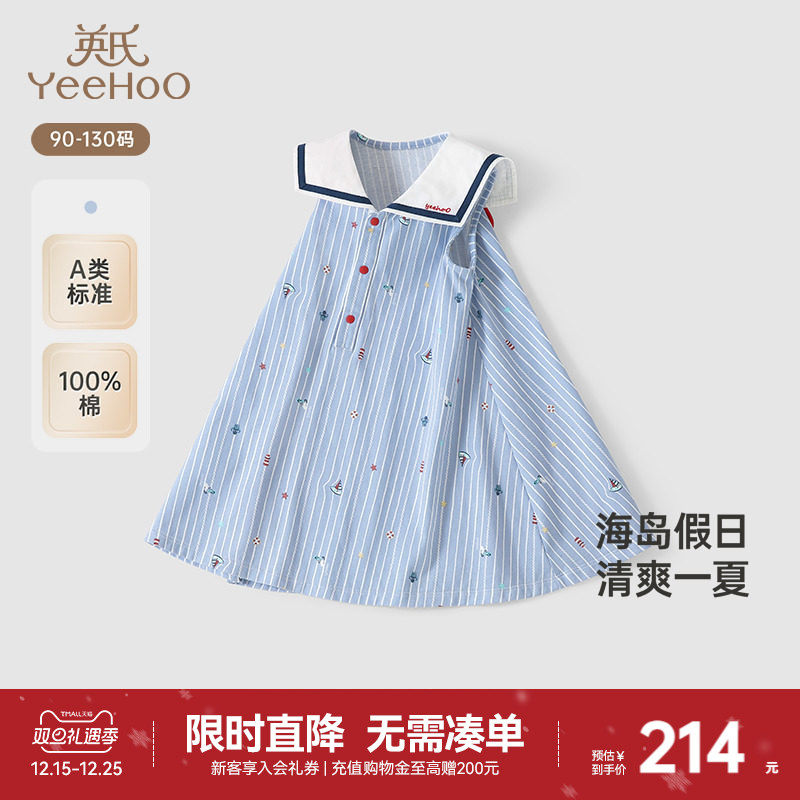 英氏女童背心裙夏季女宝宝夏装连衣裙纯棉海军风可爱条纹儿童裙子