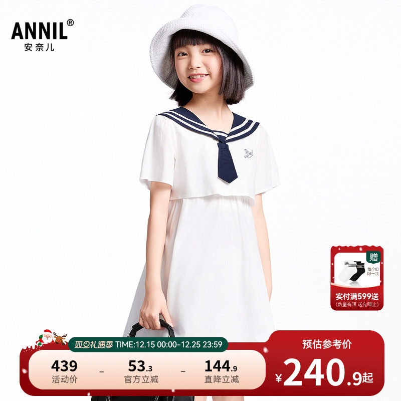 【商场同款】安奈儿童装女童短袖连衣裙2025夏新款海军风AG523622