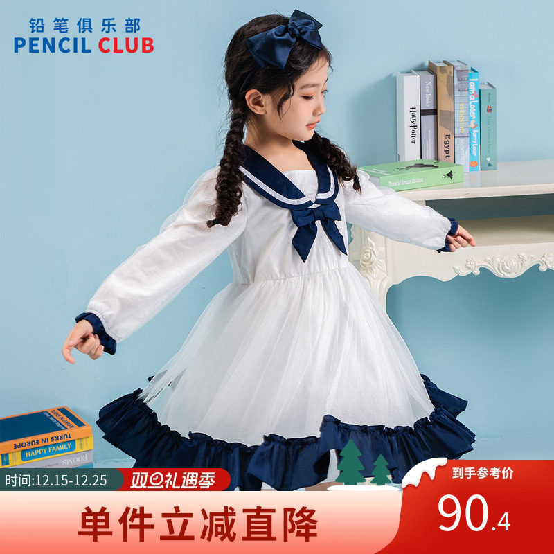 铅笔俱乐部2025年春秋新款女童连衣裙儿童海军风裙子中大童公主裙