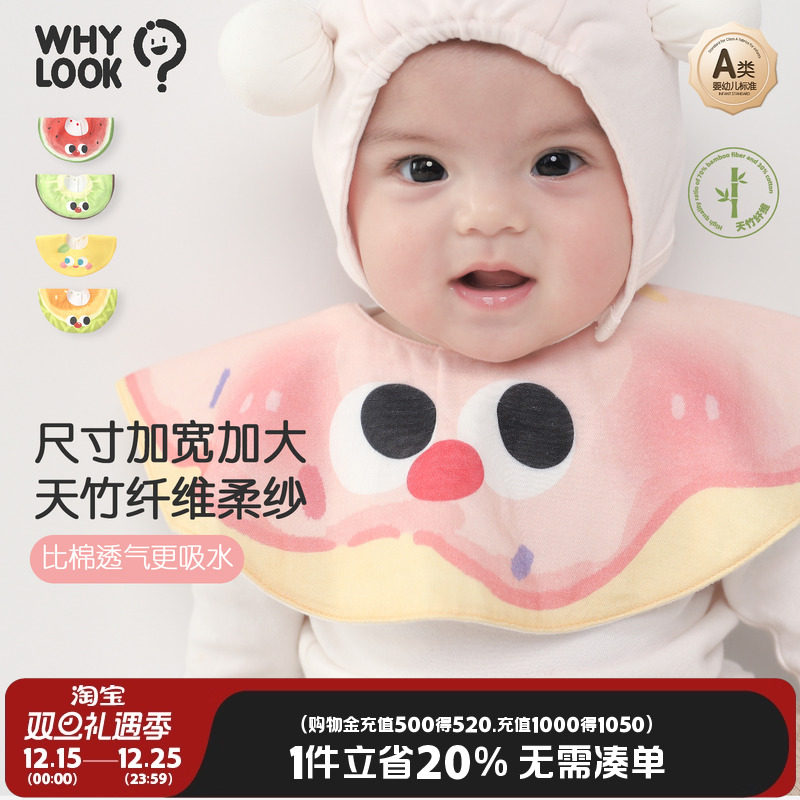 WHYLOOK 新生婴儿围嘴宝宝围兜口水巾防水吐奶垫巾圆形旋转纯棉款