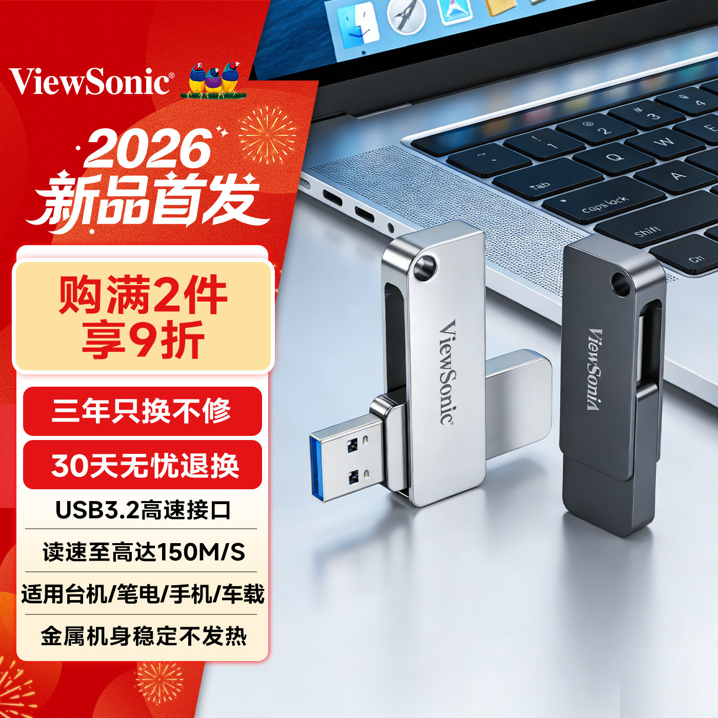 优派金属u盘高速传输64g手机电脑两用128g大容量车载优盘