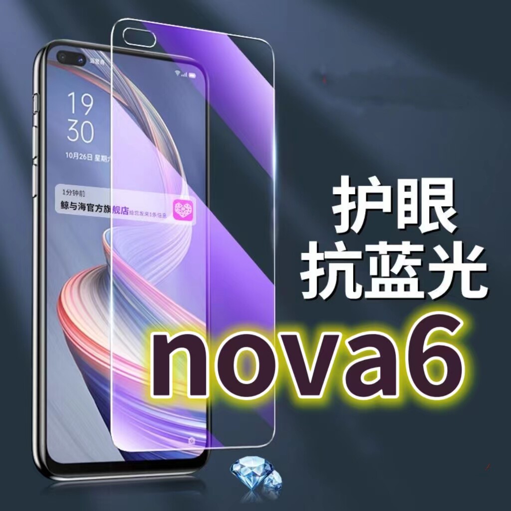 适用华为nova6钢化膜WLZ-AN00抗蓝光护眼NOVA64G手机膜黑边Nova65G原装保护膜原厂全屏防摔防爆玻璃膜高清透