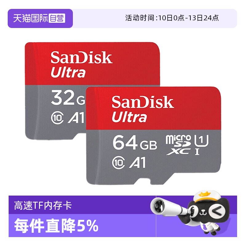 【自营】闪迪32g/64g手机TF内存卡class10存储卡记录仪监控高速卡