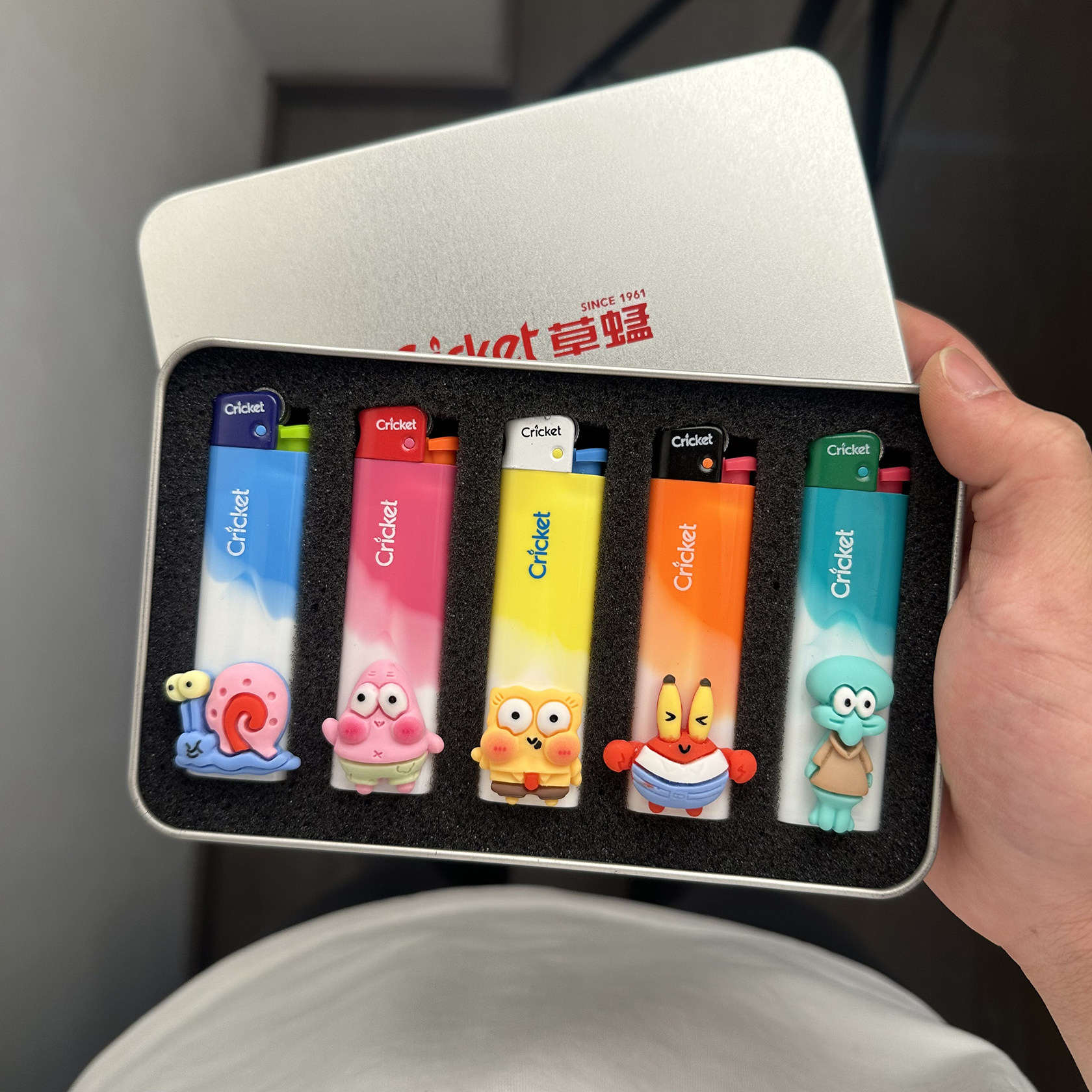 草蜢cricket正品海绵宝宝主题明火防爆一次性砂轮打火机可爱个性