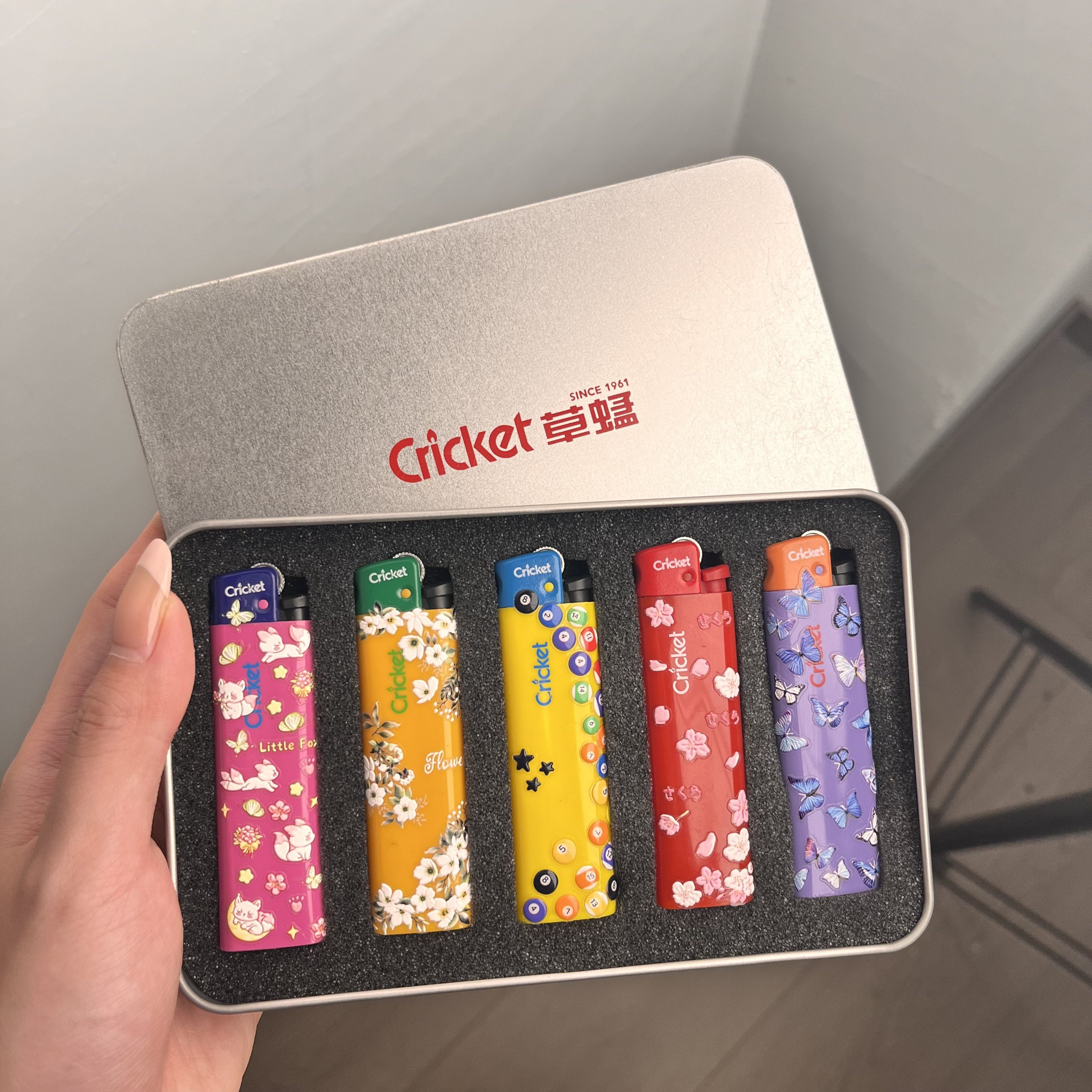正品草蜢cricket打火机DIY贴纸一次性火机卡通送男友创意潮流礼盒