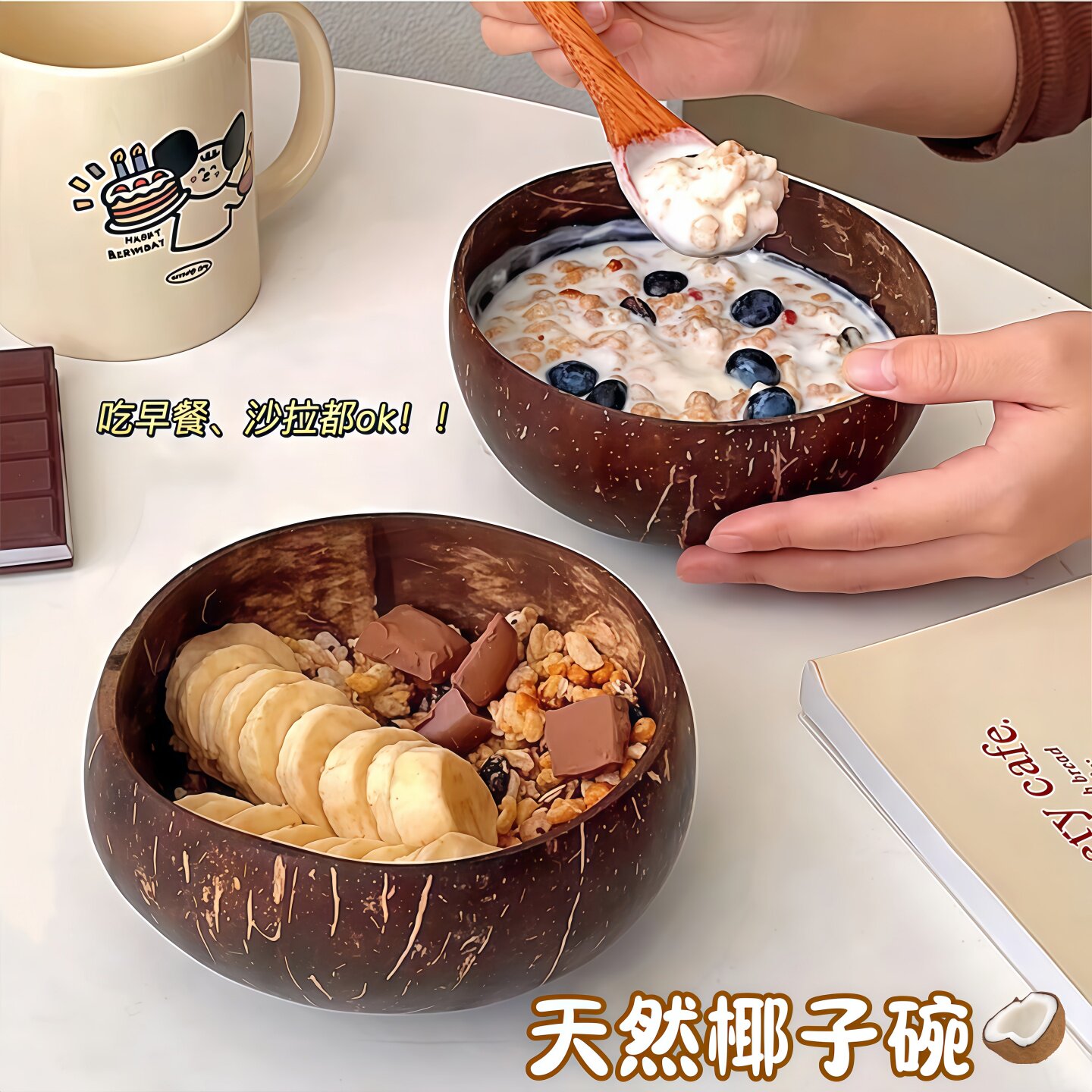 舍里天然椰子壳酸奶碗网红水果沙拉燕麦碗ins风小碗木碗带小勺子