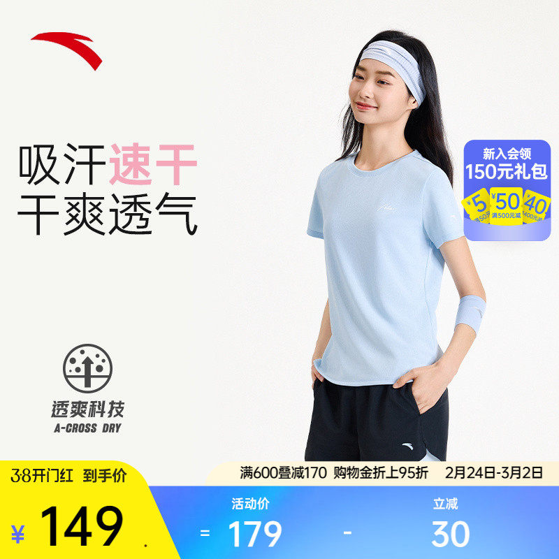 安踏速干运动套装女夏季跑步健身羽毛球服冰丝透气短袖短裤两件套