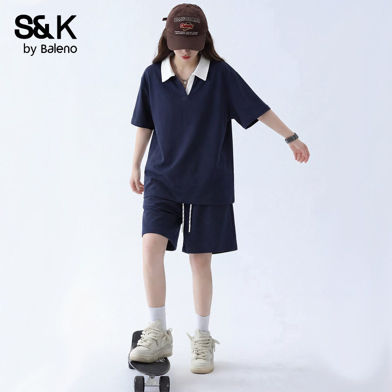 班尼路S&K藏青色套装女夏2026新款polo衫短裤网球运动穿搭一整套H