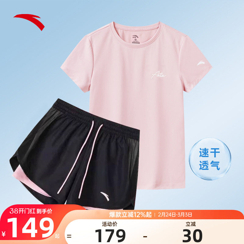 安踏速干套装丨运动套装女士夏季体测健身短袖透气跑步短裤休闲套
