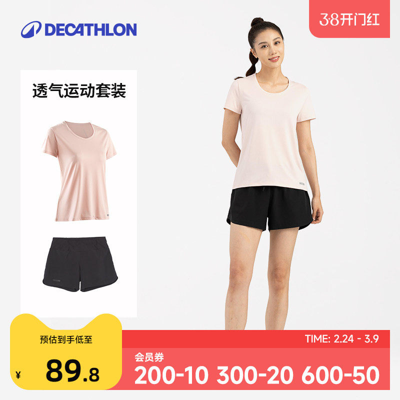 迪卡侬春夏透气运动套装女上衣T恤短袖短裤健身服跑步速干衣SAL2