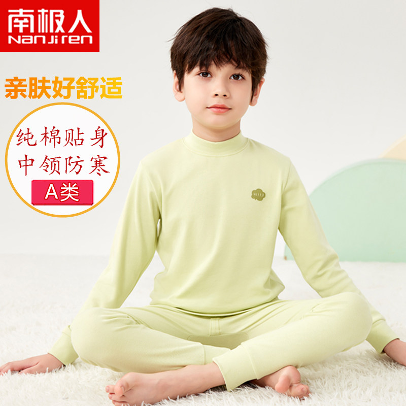 南极人男童半高领秋衣秋裤纯棉儿童内衣套装男孩全棉毛衫大童线衣