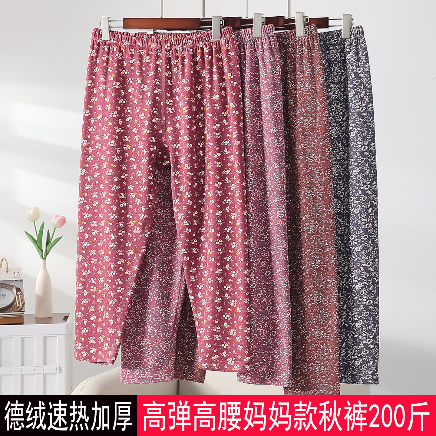 秋冬女士大码加厚德绒秋裤保暖裤自发热宽松中老年妈妈打底裤线裤