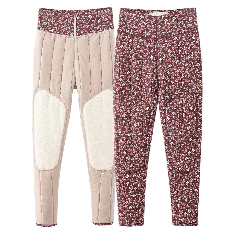 蚕丝保暖裤女冬季加绒加厚高腰一体中老年外穿东北特厚妈妈打底裤