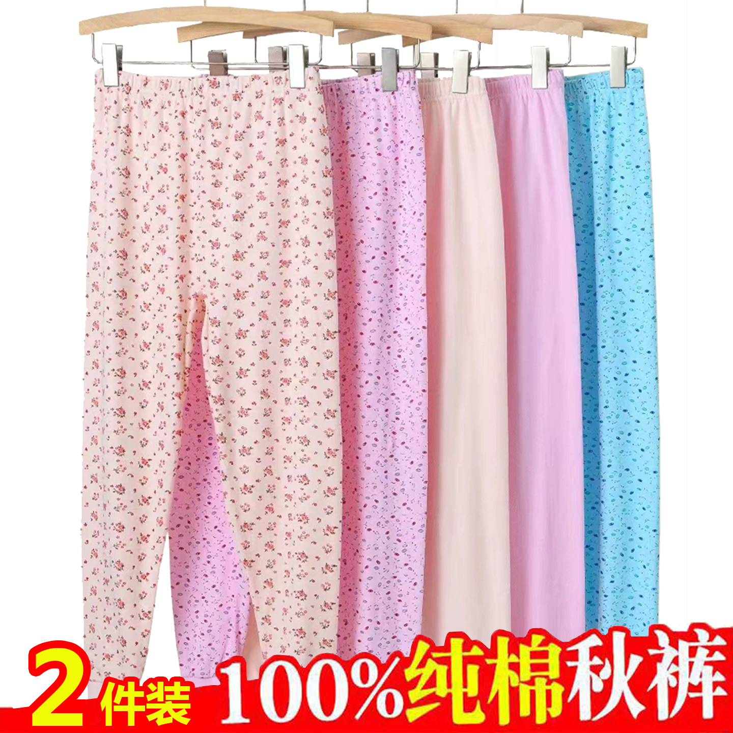 女士纯棉秋裤中老年人妈妈打底裤大码全棉毛裤保暖高腰花衬裤包邮