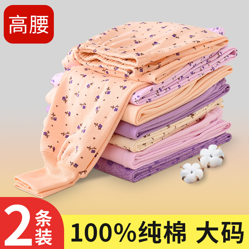 女士纯棉秋裤中老年人妈妈打底裤大码全棉毛裤宽松保暖高腰花衬裤
