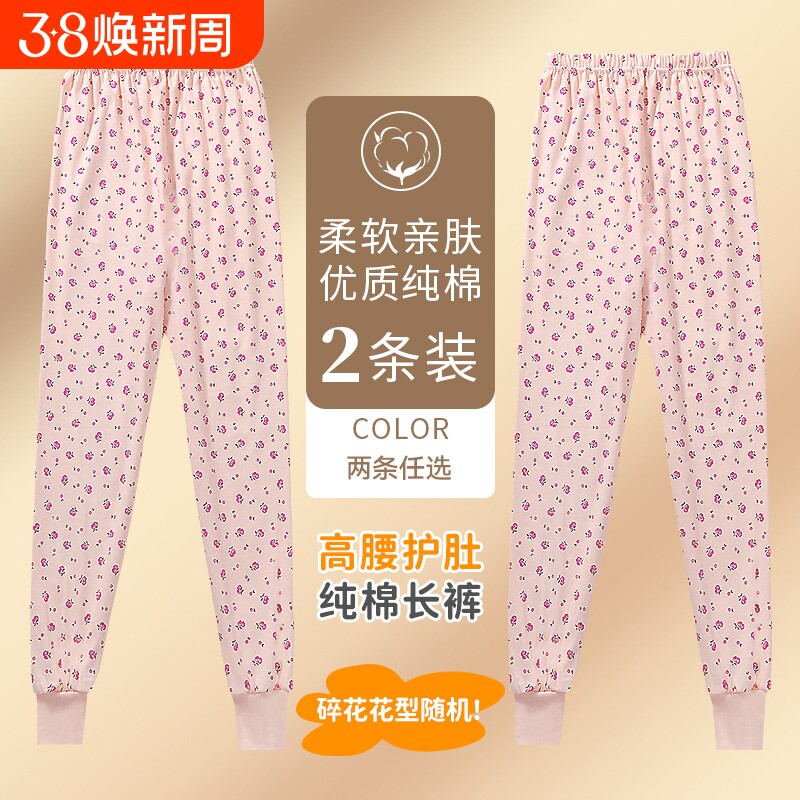秋裤女士纯棉中老年人妈妈打底裤大码全棉毛裤宽松保暖高腰花衬裤