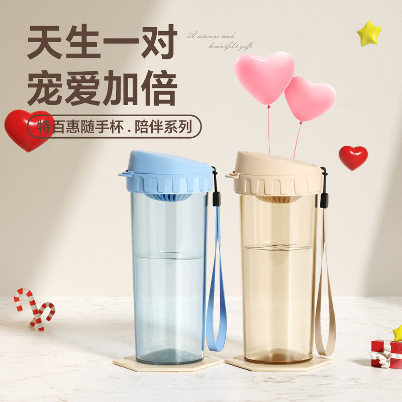 特百惠真品塑料防漏密封便携带提绳水杯经典莹彩随心杯430ML