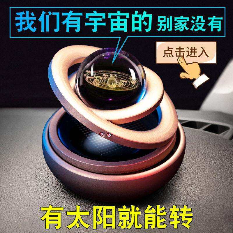 太阳能自动铝合金属双环悬浮星际水晶球网红同款车载香薰永动摆件