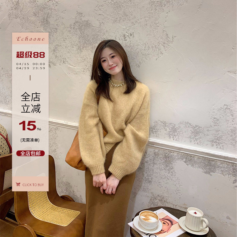 Echoone 暖暖过冬 全羊绒套头慵懒毛衣女冬季厚款韩版针织衫上衣